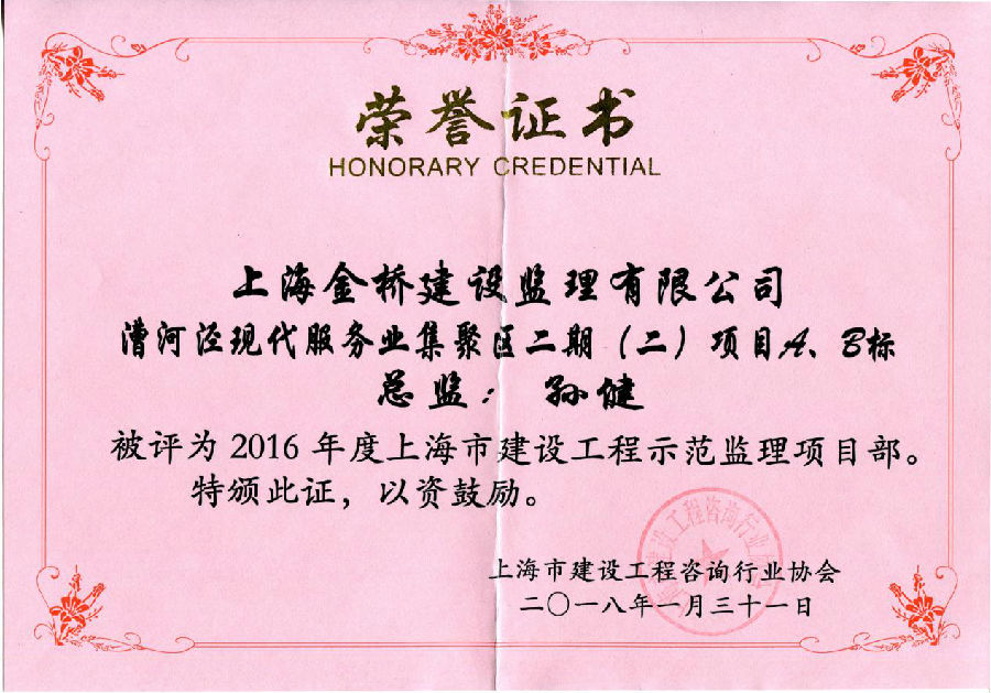漕河泾现代服务业集聚区二期获上海市示范监理部