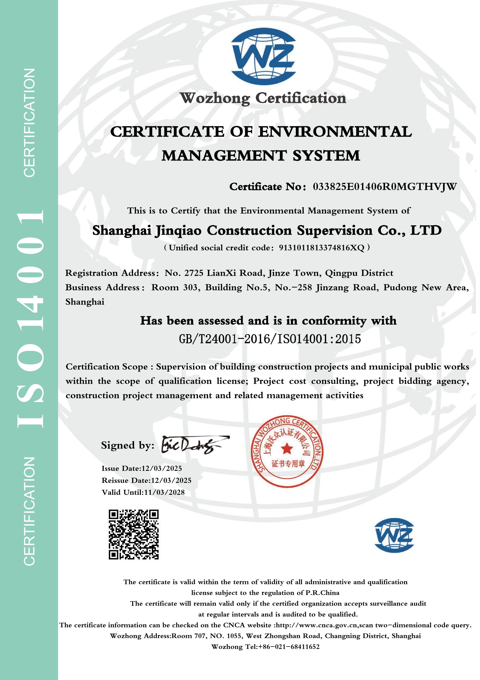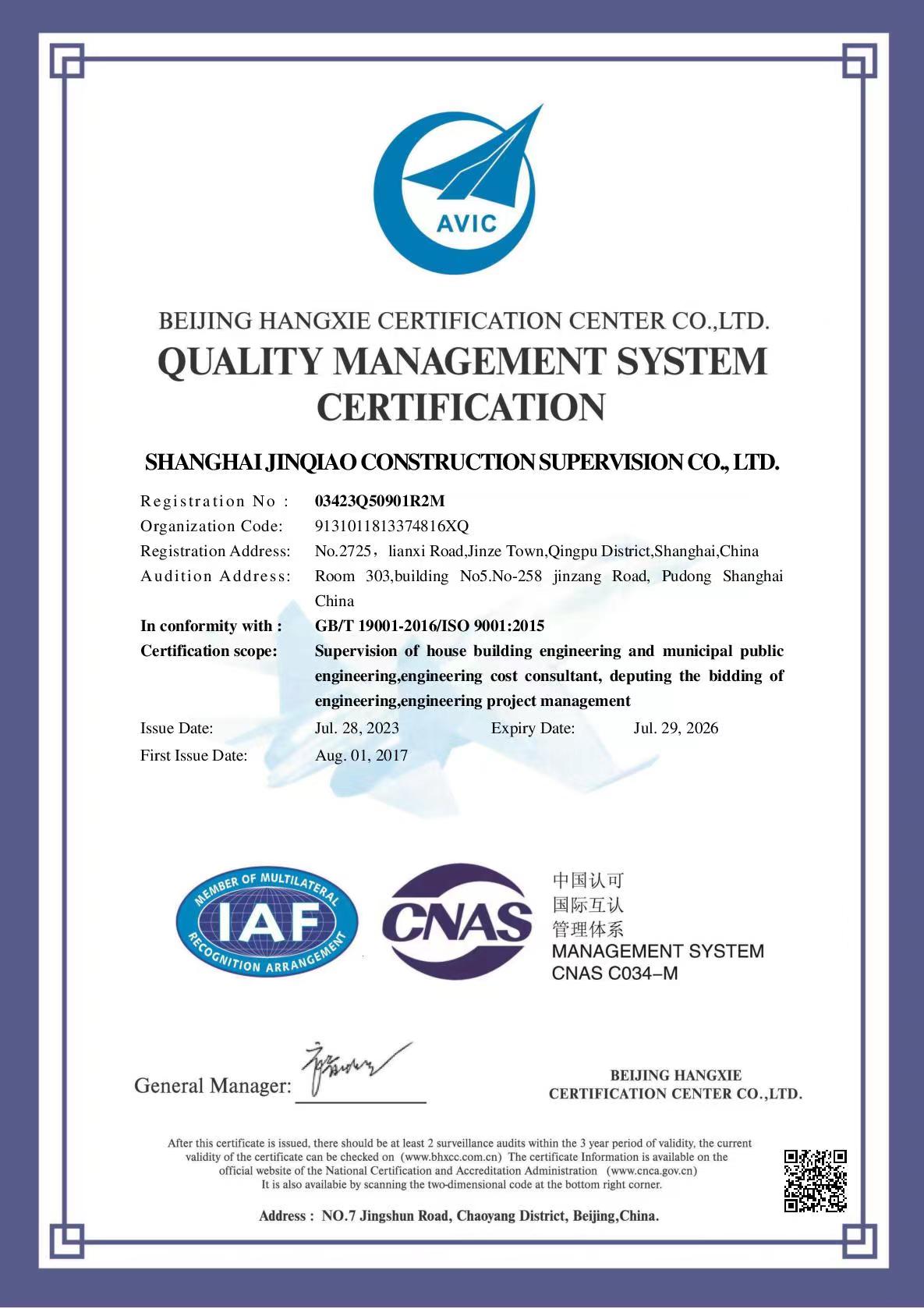 2025年ISO45001职业健康安全管理体系认证证书(英文...