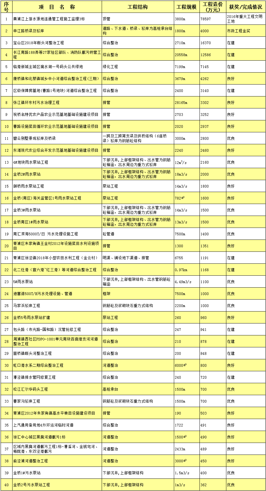 部分水利工程监理项目业绩一览表