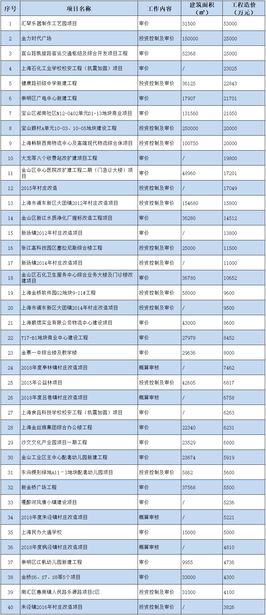 部分公共建筑工程造价咨询业绩一览表